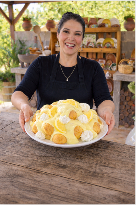 Profiteroles con crema de limón y salsa custard