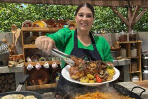 Este espectacular pollo asado destaca por su piel crujiente y dorada, sazonado con hierbas y especias que realzan su sabor natural. Se acompaña con papas doradas, champiñones salteados y vegetales asados que completan un plato perfecto para compartir en familia o servir en eventos especiales.