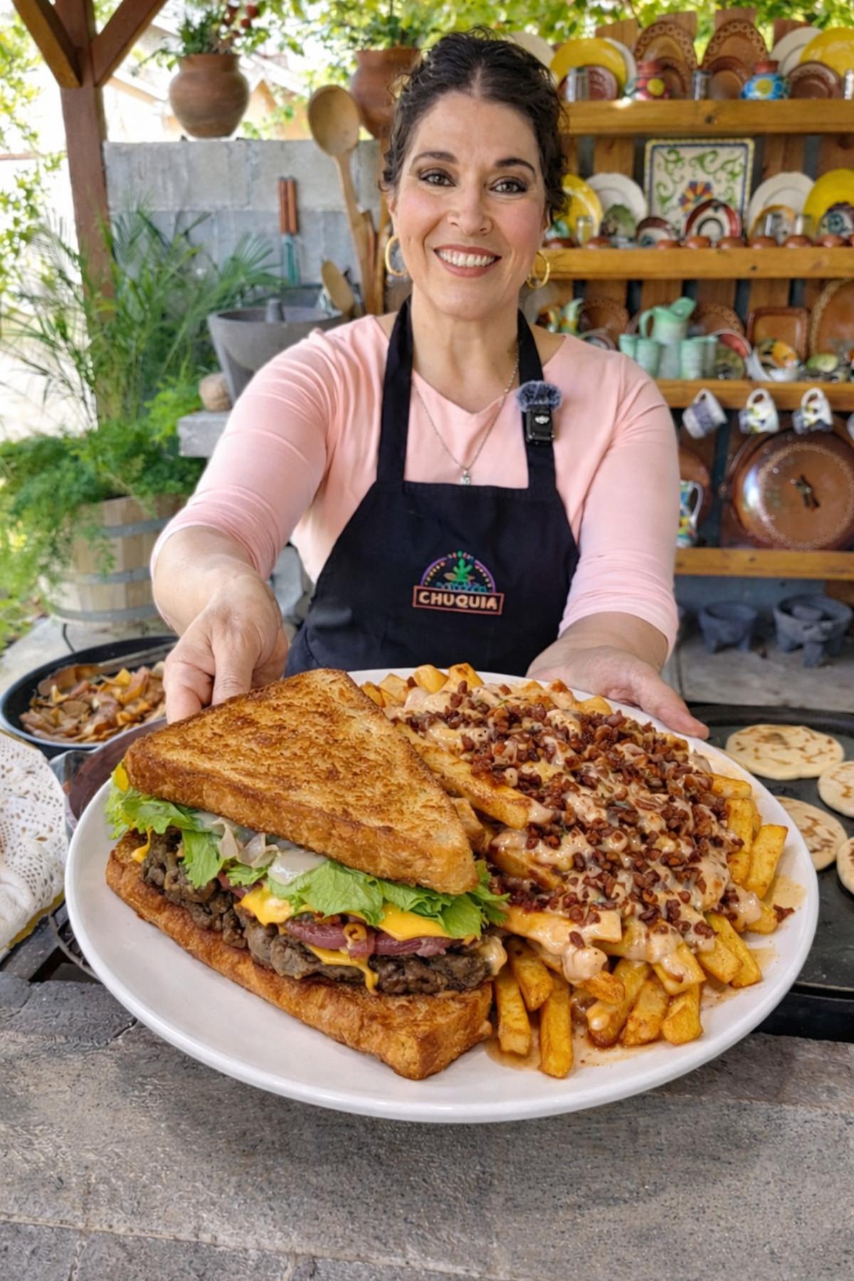 Sándwich Tostado de Carne con Papas Cargadas (Estilo Casero Street Food)