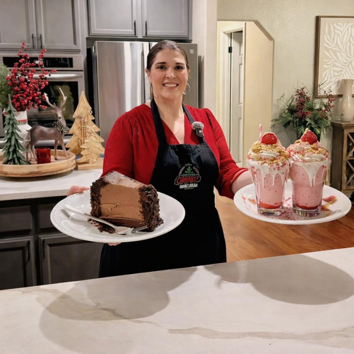 Malteada Artesanal de Fresa con Pastel de Chocolate
