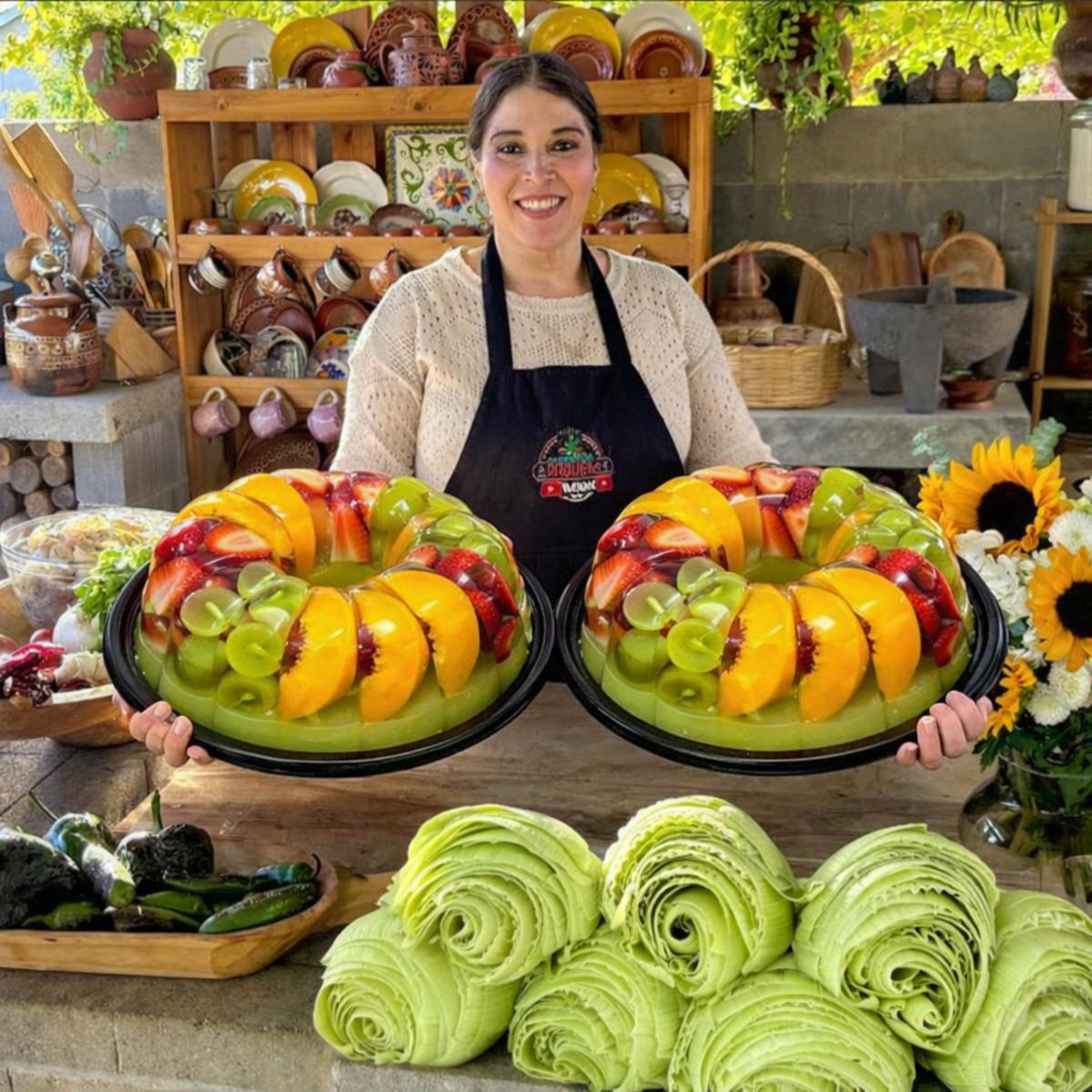 Una espectacular gelatina de frutas frescas presentada en forma de rosca, llena de colores vibrantes y sabores naturales. Con capas de uvas verdes, fresas jugosas y duraznos dulces, esta gelatina no solo es refrescante, sino también una opción perfecta para reuniones, fiestas o días calurosos. Ligera, llamativa y absolutamente deliciosa.