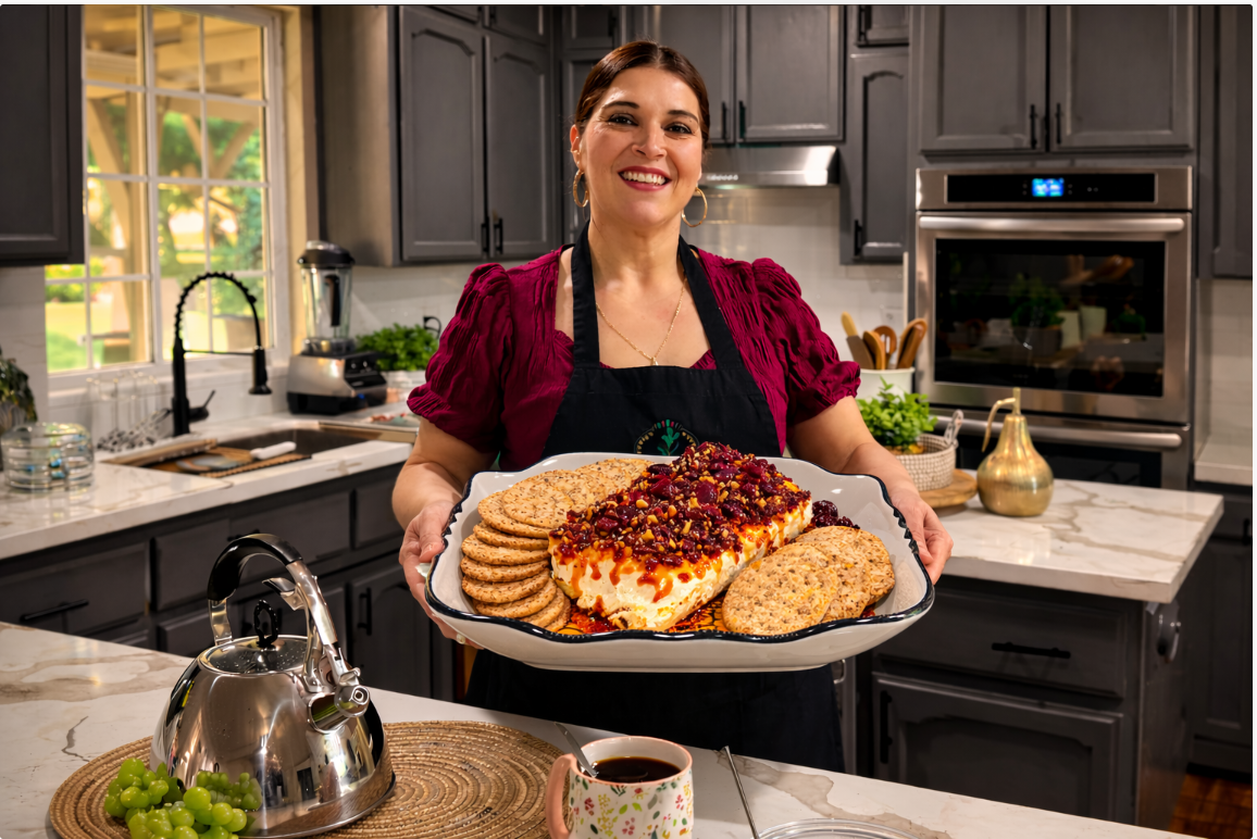 🧡 Este queso crema botanero con chile y arándanos es una botana súper fácil, cremosa y llena de sabor. La combinación del queso suave con el toque picosito del chile, el dulzor de los arándanos secos y la textura crujiente de las semillas y galletas lo convierte en una opción perfecta para reuniones, fiestas o una tarde de antojo. Además, se ve espectacular en la mesa y se prepara en minutos.